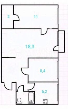 Общая площадь: 55 кв. м .Площадь комнат: 8.4 + 18.3 + 11 кв. м. .Жилая площадь: 37.7 кв. м. .Площадь кухни: 6.2 кв. м. .Инфраструктура района:
