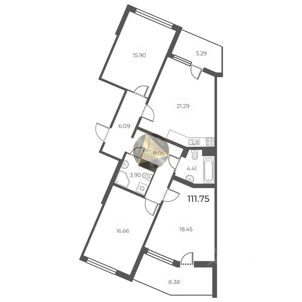 - 2 совмещённых санузла 4.41 и 3.90 м2