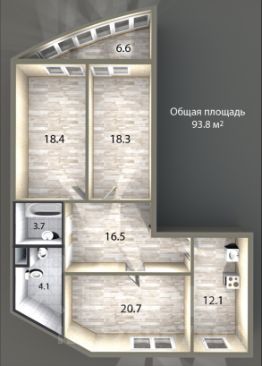Продается просторная 3-комнатная квартира на 23 этаже современного 26-этажного кирпичного дома, построенного в 2009 году. Общая площадь квартиры — 93.8 кв. метров, жилая площадь — 56 кв. метров. Высокие потолки 2.8 метра создают ощущение свободы и простора.