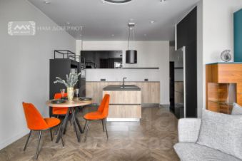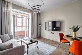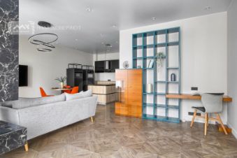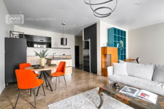 Квартира с большой кухней 27 м и гостиной 16 м дают открытое пространство в 43 метра, здесь чувствуется простор. Ремонт выполнен по проекту известного дизайнера. Чувствуется уникальный стиль.