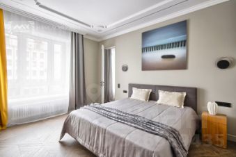 Изолированная спальня с собственной большой гардеробной и ванной. При входе отдельная гардеробная под верхнюю одежду и постирочный блок, гостевой с\у. Использованы европейские материалы в отделке, мебель производства Австрии и Германии. Техника ведущих брендов. Утепленная лоджия с панорамными окнами. Много зон хранения, кондиционирование, паркет редкой породы дерева, керамогранит Италия. Квартира внешняя (не во двор-колодец). Окна обращены в тихую часть, вдали от проспекта. Боковой вид на воду и зелень. Здесь рассветное солнце.