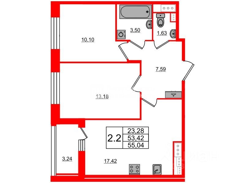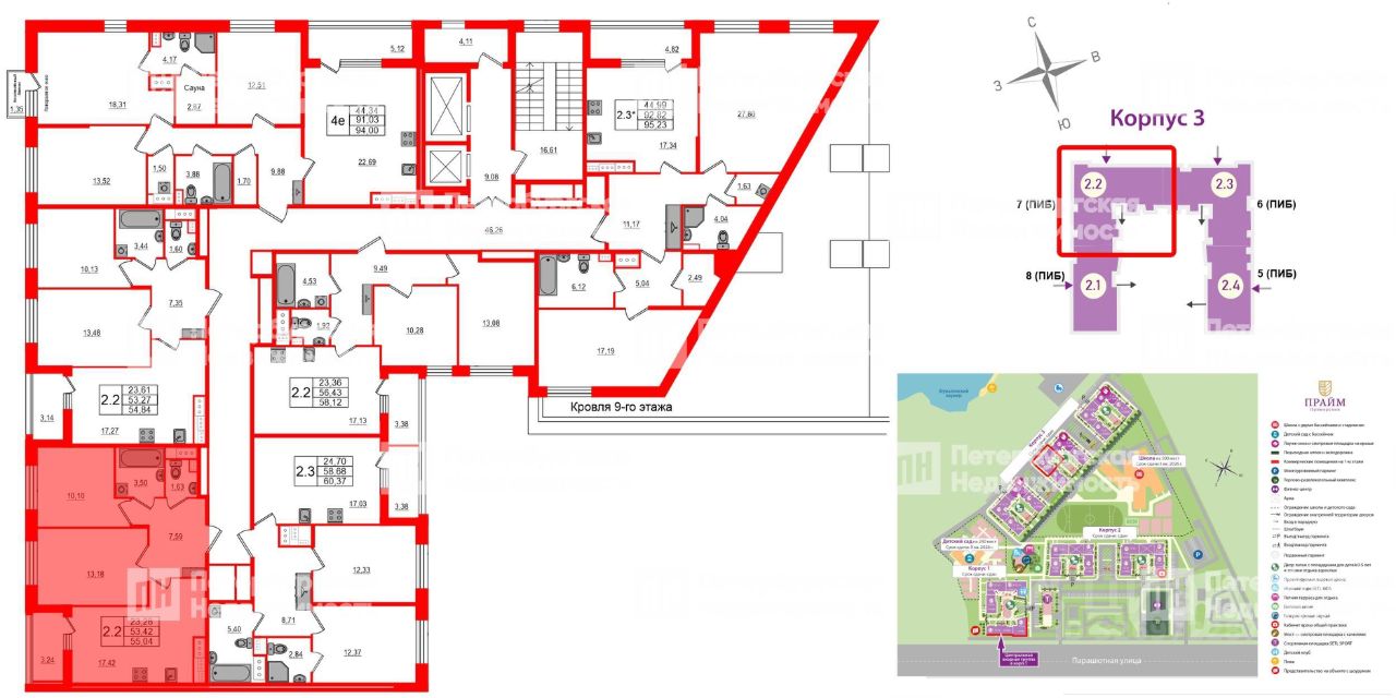 Продается 2-комн. квартира, 55,04 м² в ЖК Прайм Приморский
