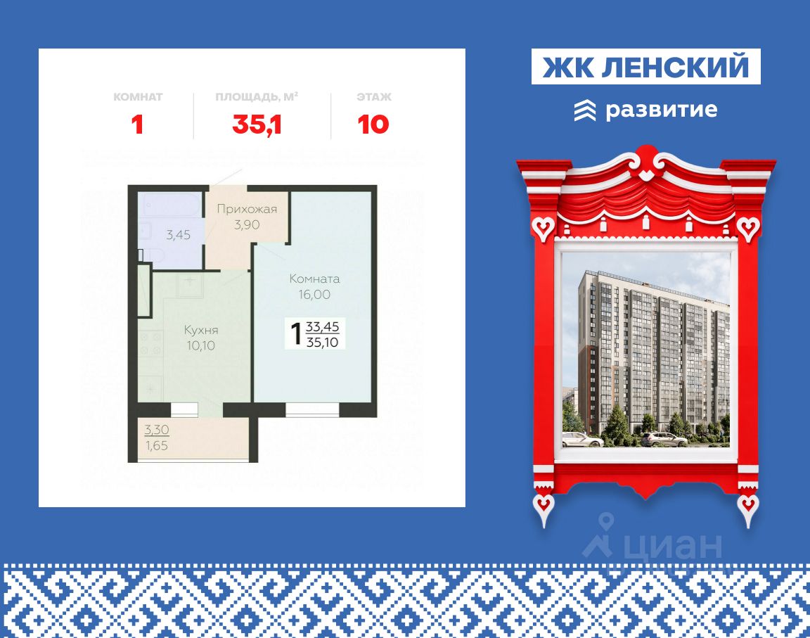 В продаже квартира площадью 35.1 кв. м с чистовой отделкой на 10 этаже 16 этажного дома. Квартира находится в 7 корпусе:
