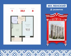 В продаже квартира площадью 35.1 кв. м с чистовой отделкой на 8 этаже 16 этажного дома. Квартира находится в 7 корпусе: