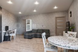 Евро-дизайнерский ремонт выполнен в мягких, тёплых оттенках. В квартире ощущается гармония, аккуратность и внимание к деталям — сюда хочется возвращаться после рабочего дня и проводить выходные всей семьёй.
