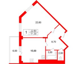 Общая площадь квартиры 51,3 м2, кухня 15 м2 и комната 22,6 м2 с двумя окнами. Все окна выходят во двор на юг и юго-запад. Из кухни выход на застекленный балкон. 2 грузовых лифта и 1 пассажирский сделают переезд комфортным.