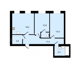 - Жилая площадь: 26.5 кв.м. Комнаты: 13.0 и 13.5 кв.м.