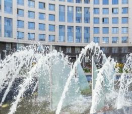 - выделенные тротуарные дорожки для вечернего променада и изобилие зеленых насаждений. Изюминкой двора, является летний фонтан.