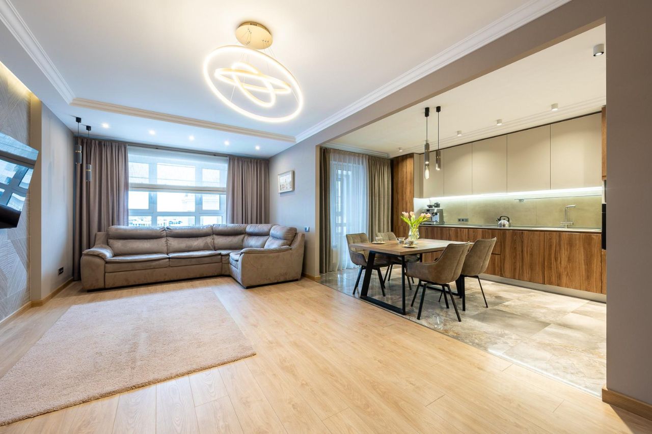 Квартира наполнена светом: высокие потолки и наличие различного, современного освещения придают квартире особый шарм.