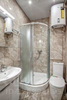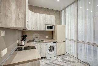 2. Апартаменты площадью 29,2 м2. Фактически однокомнатная квартира, так как кухонная зона отделена от спальни шумоизолирующей перегородкой из стеклопакета. Совмещённый санузел с душевой кабиной. Балкона нет.
