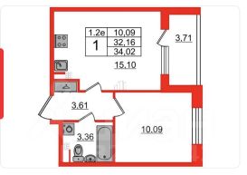 Квартира по переуступки 1-комнтаная (2е) 32,16 кв.м. 3 этаж