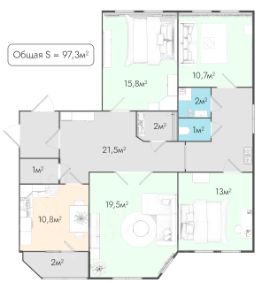Общая площадь — 98 м², 7 этаж. Квартира с очень красивой и удобной планировкой: четыре отдельные спальни и просторная кухня, где комфортно собираться всей семьёй и принимать гостей.