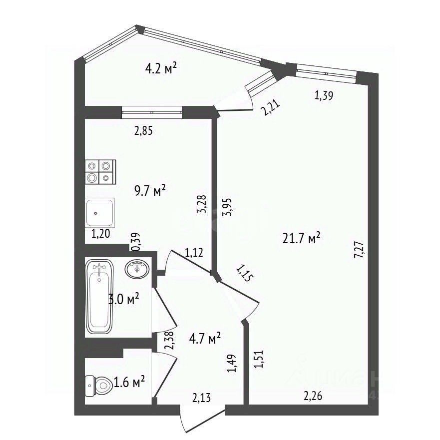 Площадь: 41 м² (жилая 22 м² + кухня-гостиная 9.7 м²)