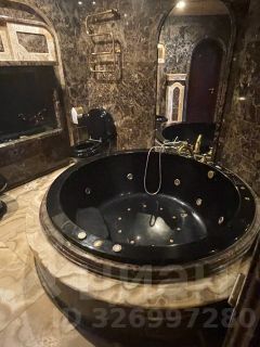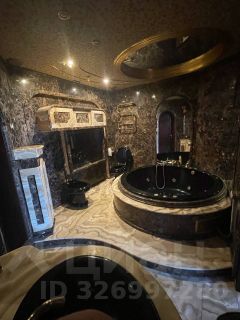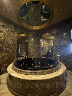 - Ванная комната с джакузи, встроенным телевизором и санузлом, отделанная ониксом. Ванная джакузи из материла, который максимально долго сохраняет тепло воды.