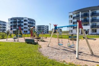 Также в комплексе запроектировано 8 игровых детских площадок, спортивные сооружения, продуманная сеть пешеходных дорожек, тротуаров и автомобильных развязок, зоны отдыха для взрослых жильцов, а также парковочные места.