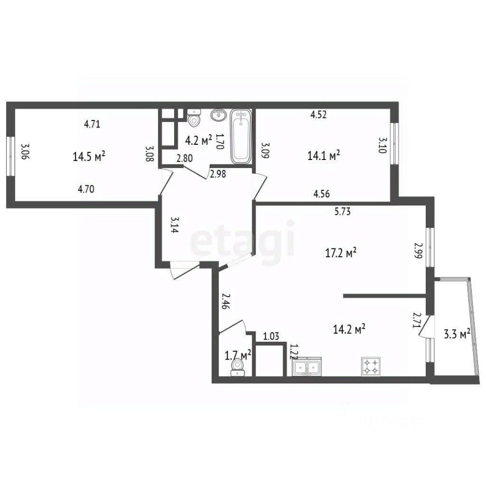 - Изолированные комнаты 14,1 м² и 14,5 м²