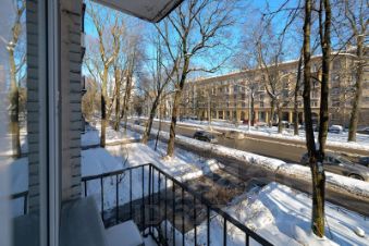 В квартире много света благодаря тому, что окна выходят на восток (большая комната и кухня), и запад (маленькая комната). Как только в Петербурге появится солнце, оно сразу заглянет и к вам.