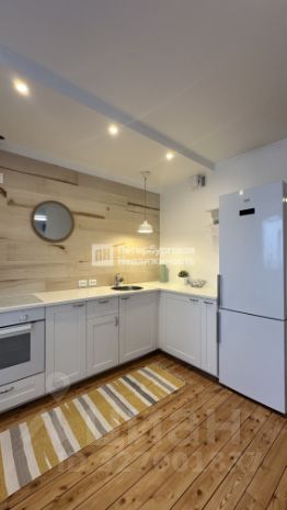 В квартире была сделана перепланировка - комнату объединили с кухней, превратив в просторную кухню-гостиную.