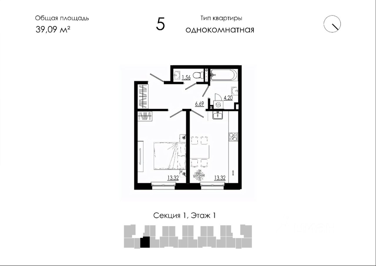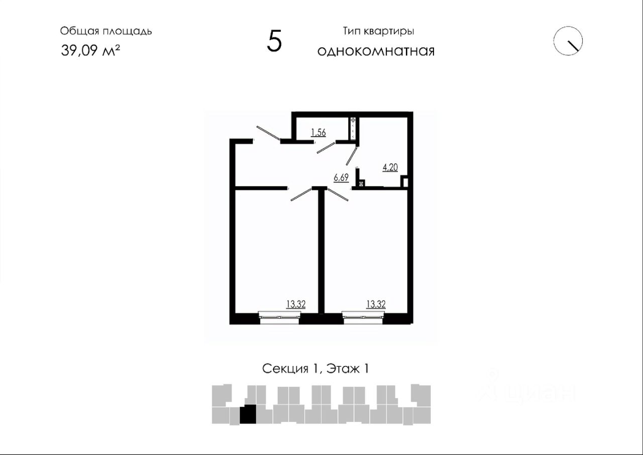 Продаётся 1-комнатная квартира в строящемся доме (Дом 19), срок сдачи: III-кв. 2026, общей площадью 39.09 кв.м., на 1 этаже. Новый жилой дом от застройщика "НК Развитие" расположен по адресу: Форносовское г.п, г.п.Форносово, ул.Круговая, уч. 19.