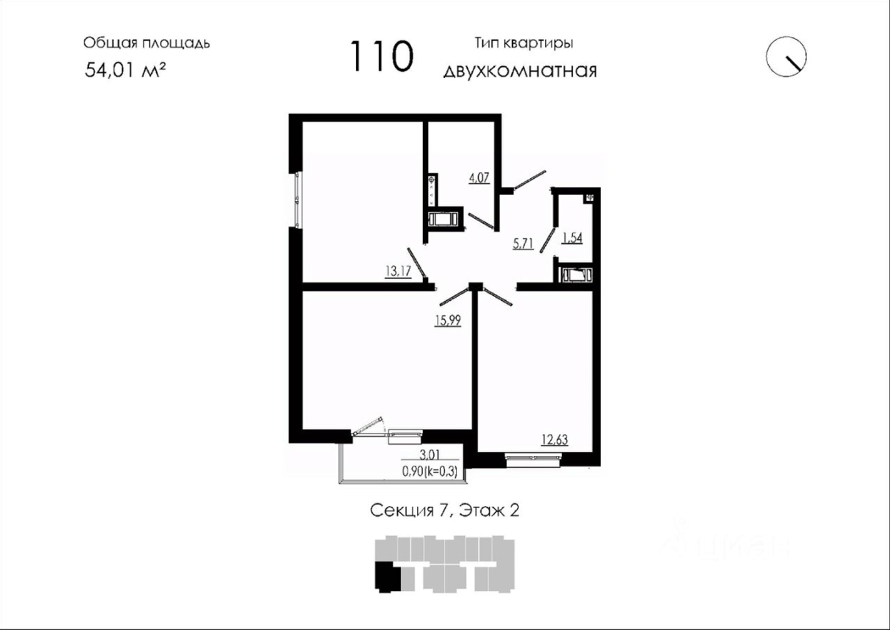 Продаётся 2-комнатная квартира в строящемся доме (Дом 19), срок сдачи: III-кв. 2026, общей площадью 54.01 кв.м., на 2 этаже. Новый жилой дом от застройщика "НК Развитие" расположен по адресу: Форносовское г.п, г.п.Форносово, ул.Круговая, уч. 19.
