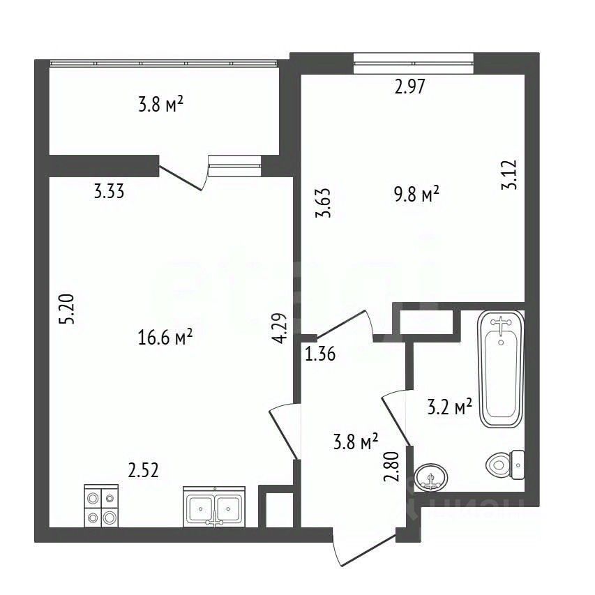 - Планировка: светлая комната + функциональная кухня, совмещённый санузел