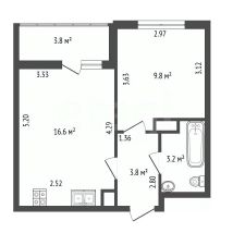 - Тип: однокомнатная, 33,4 м² (без учёта лоджии)
