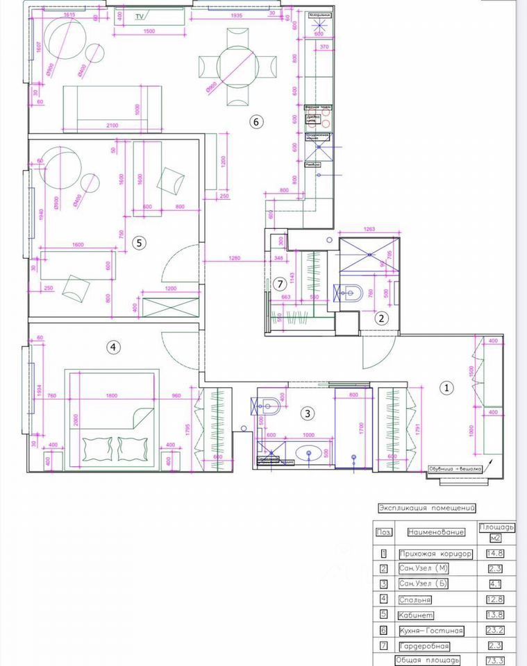 — Просторная кухня-гостиная (при желании можно выделить 3-ю комнату)