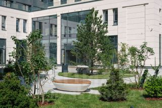 Проект общественно-делового комплекса разработан одной из известнейших архитектурных студий Санкт-Петербурга - компанией "INTERCOLUMNIUM". Концепция проекта заключается в создании яркого, запоминающегося образа современного комфортного здания, отвечающего самым высоким стандартам жизни.