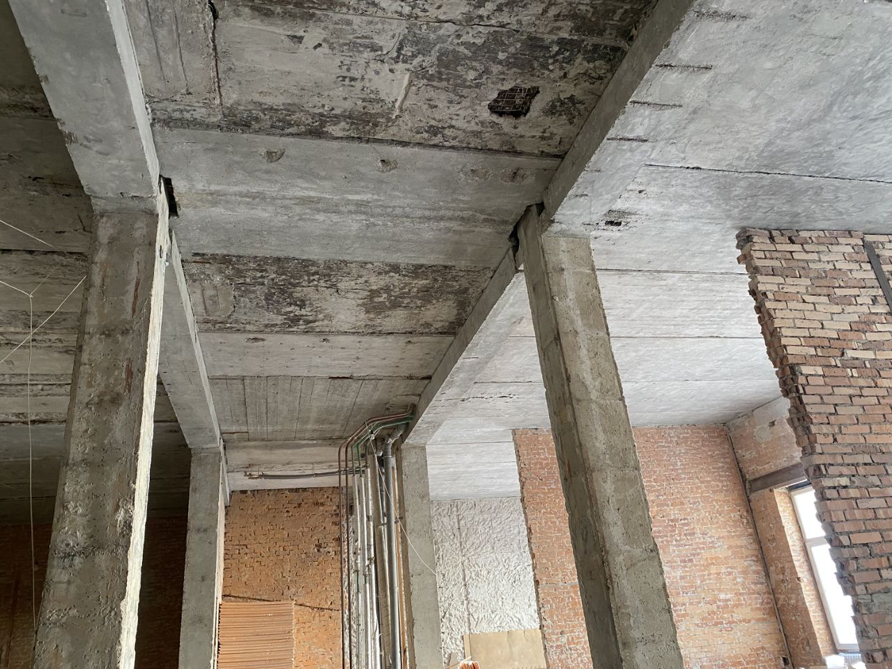 Объект в состоянии после полного демонтажа (зачищенный кирпич стен и плиты перекрытий), подготовлен для индивидуальной планировки и отделки.