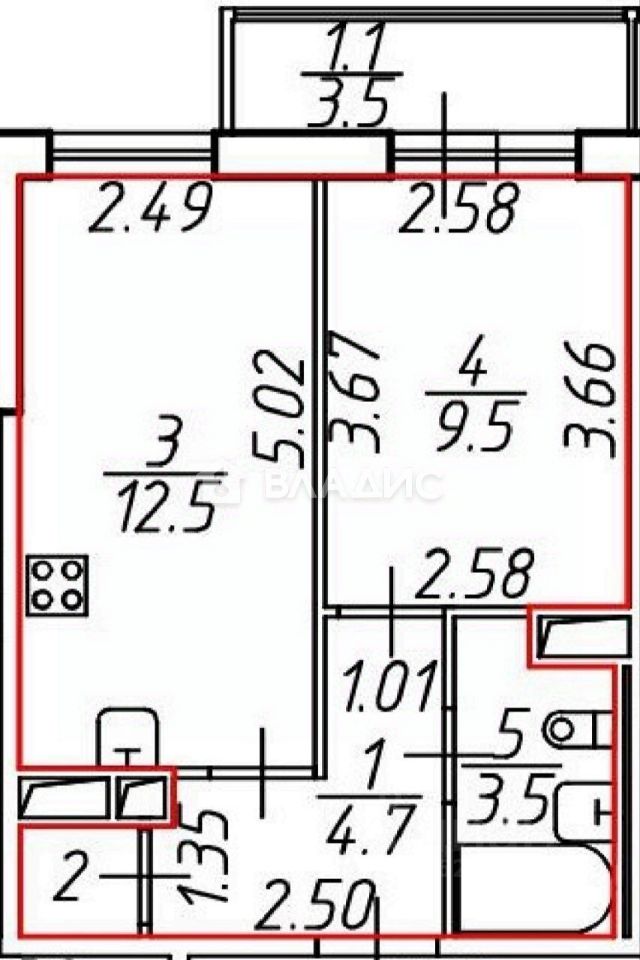 Квартира расположена на 11-м этаже 18-этажного монолитного дома, построенного в 2023 году. Общая площадь квартиры составляет 31,2 кв. м, из которых 9,5 кв. м — жилая площадь, а 12,5 кв. м — кухня. Высота потолков 2,6 м. Одно из преимуществ этой квартиры — наличие отдельной гардеробной, которую можно функционально обустроить.