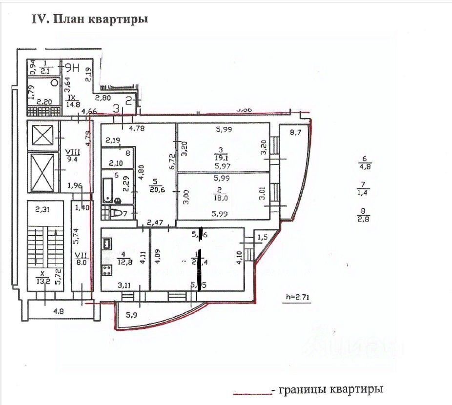 Высота потолков: 2,71 м