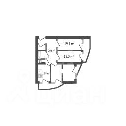 Жилая площадь: 61,5 кв. м (4 комнаты: 18,0 + 19,1 + 12,4 + 12,0)