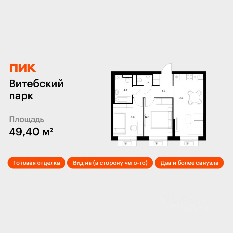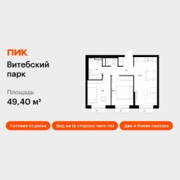 Продаётся 2-комн. квартира площадью 49,4 кв.м на 2 этаже 12 этажного дома (Корпус 6, Секция 3) проекта ПИК Витебский парк. Светлый просторный подъезд на уровне земли, функциональная планировка, большие окна, c отделкой.