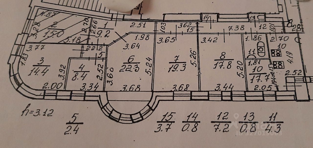 Общая площадь всей квартиры 143,3 м2, жилая 97,7 м2, H потолка - 3,12 м , кухня 17,7 м2