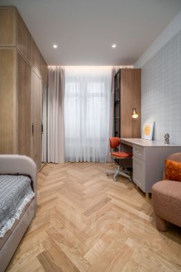 Квартира от студии DZM Design. Востребованная планировка с 3 спальнями. Качественные натуральные материалы и образцовое исполнение. Приватность и абсолютная тишина - вид из окон на Сад ветеранов сцены.