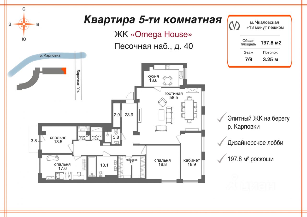 Премиальный ЖК "Omega House". Шикарная 5-ти комн. квартира с великолепным дизайнерским ремонтом и всем необходимым для комфортной жизни - это для Вас!