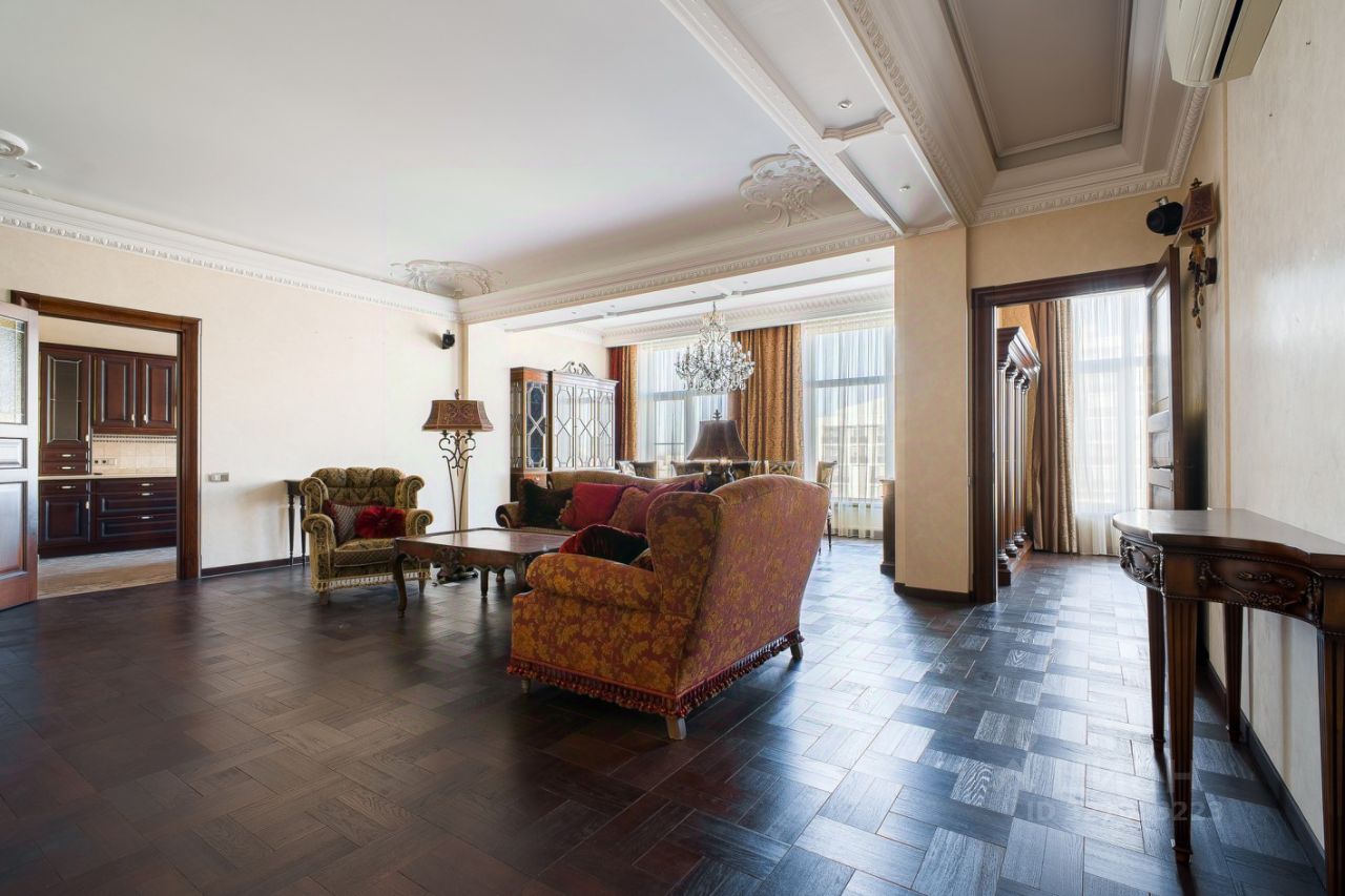 Гостиная, кухня, 3 изолированные спальни, кабинет, 2 с/у, гардеробные, постирочная, балкон