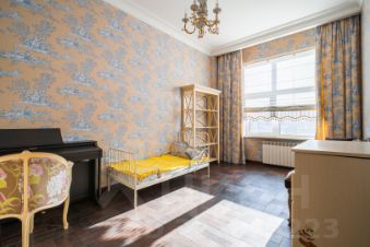 Просторная гостиная 60 м² с 2 большими окнами. В кабинете и спальнях стильная дорогая отделка, материалы высшего класса, делали для себя. Корпусная мебель из красного дерева от итальянской Provasi, мягкая мебель от голландской Eichholtz, кровати от итальянской Flexform с матрасами от Consul. Экологичная мебель в детской комнате от итальянской Erbesi. В комнате сделано грамотное зонирование: игровое и спальное места. В комнатах ТВ и акустика класса High End от датской Bang & Olufsen. Шторы блэкаут Delius
