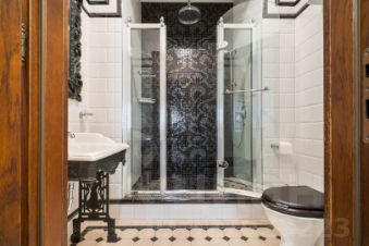2 полноценных с/у, на полу итальянский керамогранит с подогревом, стены плитка Versace. Раковины, унитазы, душевая система, смесители от Devon&Devon (Италия), немецкая ванна Hoesch. Свет мягкое карнизное, точечное освещение. Фантастические люстры из Италии Arte Lamp, из хрусталя и цветного венецианского стекла Bella Figura. Электрооборудование Jung. Централизованная приточно-вытяжная вентиляция. Кондиционеры Mitsubishi