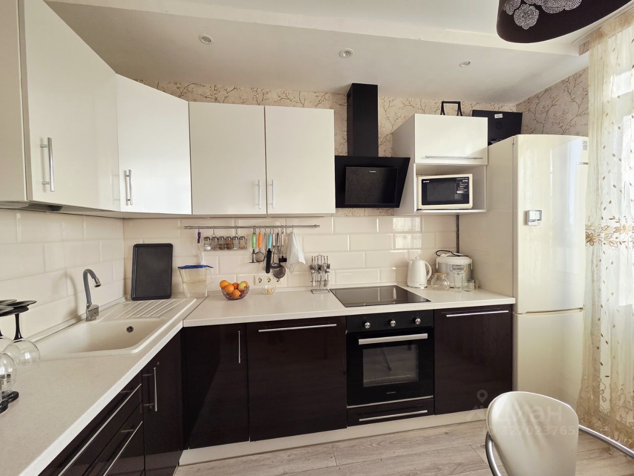 - кухня со встроенной бытовой техникой - варочная поверхность, духовой шкаф, посудомоечная машина, вытяжка;