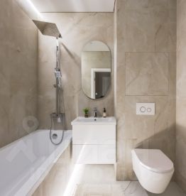 Установлена система тёплого пола в зоне керамогранита, в с/у вмонтирован электроводонагреватель, электрический полотенцесушитель.