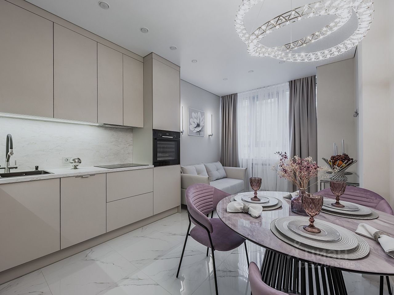 Закуплена новая мебель Garda Decor, встроена кухня и шкаф для хранения вещей по индивидуальным размерам на заказ. Роскошная двуспальная кровать с новым ортопедическим матрацем. Столовая группа с удобными мягкими креслами, раскладной диван, консоли. Кухня оснащена встроенной бытовой техникой BOSCH. В спальне располагается вместительная гардеробная.