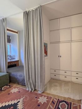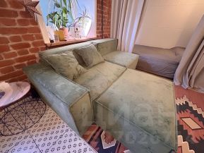 В квартире есть вся необходимая мебель: вместительные шкафы, удобные диваны, большая кровать за пологом штор.