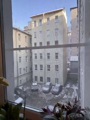 Из окон открывается вид на маленький дворик, в котором тихо и безветренно.