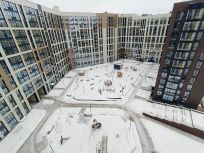 Территория жилого комплекса закрыта и благоустроена, спроектированы детские и спортивные площадки, места для отдыха.