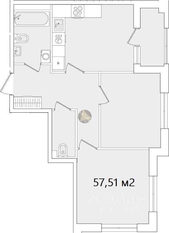 Квартира находится на 4 этаже в 13-этажном корпусе. Общая площадь квартиры 57,51 м².