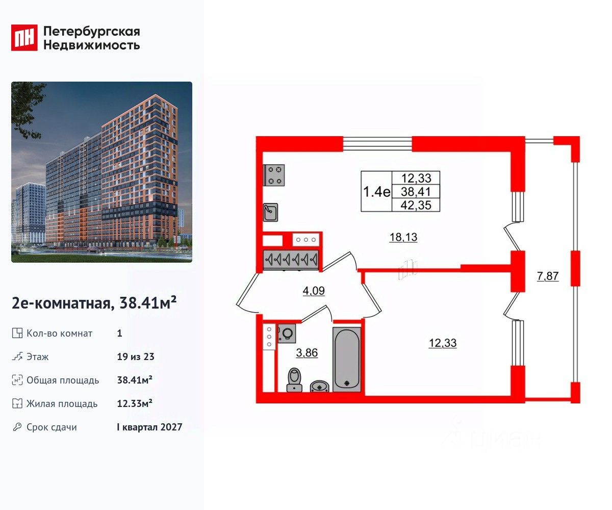 Продается просторная 1-комнатная квартира в жилом комплексе "Город звезд" в новом городе на правом берегу Невы. До метро можно добраться на транспорте всего за 13 минут. Удобная, классическая, функциональная европланировка, большая кухня-гостиная 18.13 м², просторная прихожая 4.23 м². Общая площадь квартиры - 38.41 м², жилая 12.33 м², высота потолка 2.75 м. Квартира продается с отделкой "Норд Лайн светлый". Что особенного в ЖК "Город звезд"? • Инновационный Лицей Setl с оригинальной архитектурной концепцией и уникальной образовательной средой • Невский лесопарк под окнами - всегда свежий воздух и полноценный отдых на природе • Четыре тематические площади отдыха с разнообразным благоустройством • Аллея Звёзд - променад протяженностью 5 км с ландшафтным озеленением, зонами отдыха и велодорожкой • Выход на набережную реки Утки, где можно порыбачить или взять напрокат лодку • Единая входная группа с ресепшен и подземный паркинг