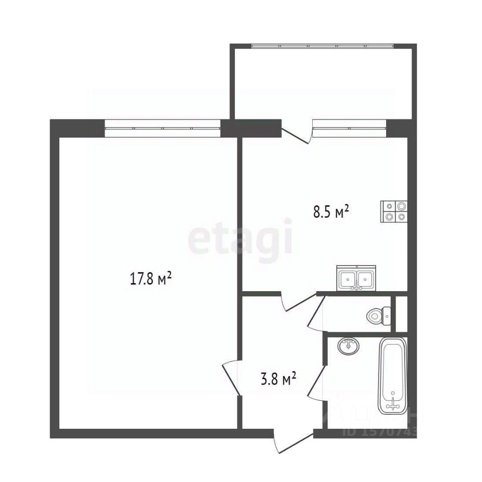 Общая площадь квартиры- 32,8 кв.м., площадь комнаты- 17,8 кв.м., кухня- 8,5 кв.м.