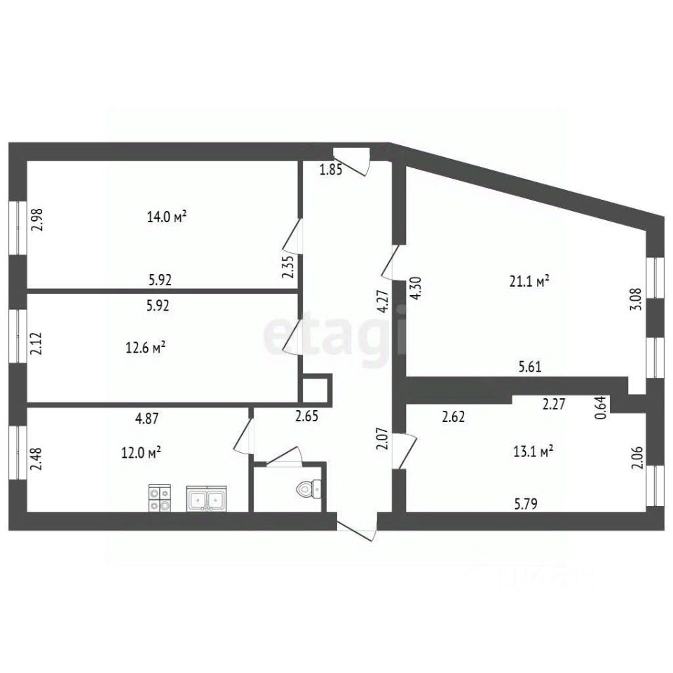 Планировка полностью свободна: существующие перегородки не являются несущими, что позволяет радикально изменить внутреннюю организацию пространства под личные задачи.