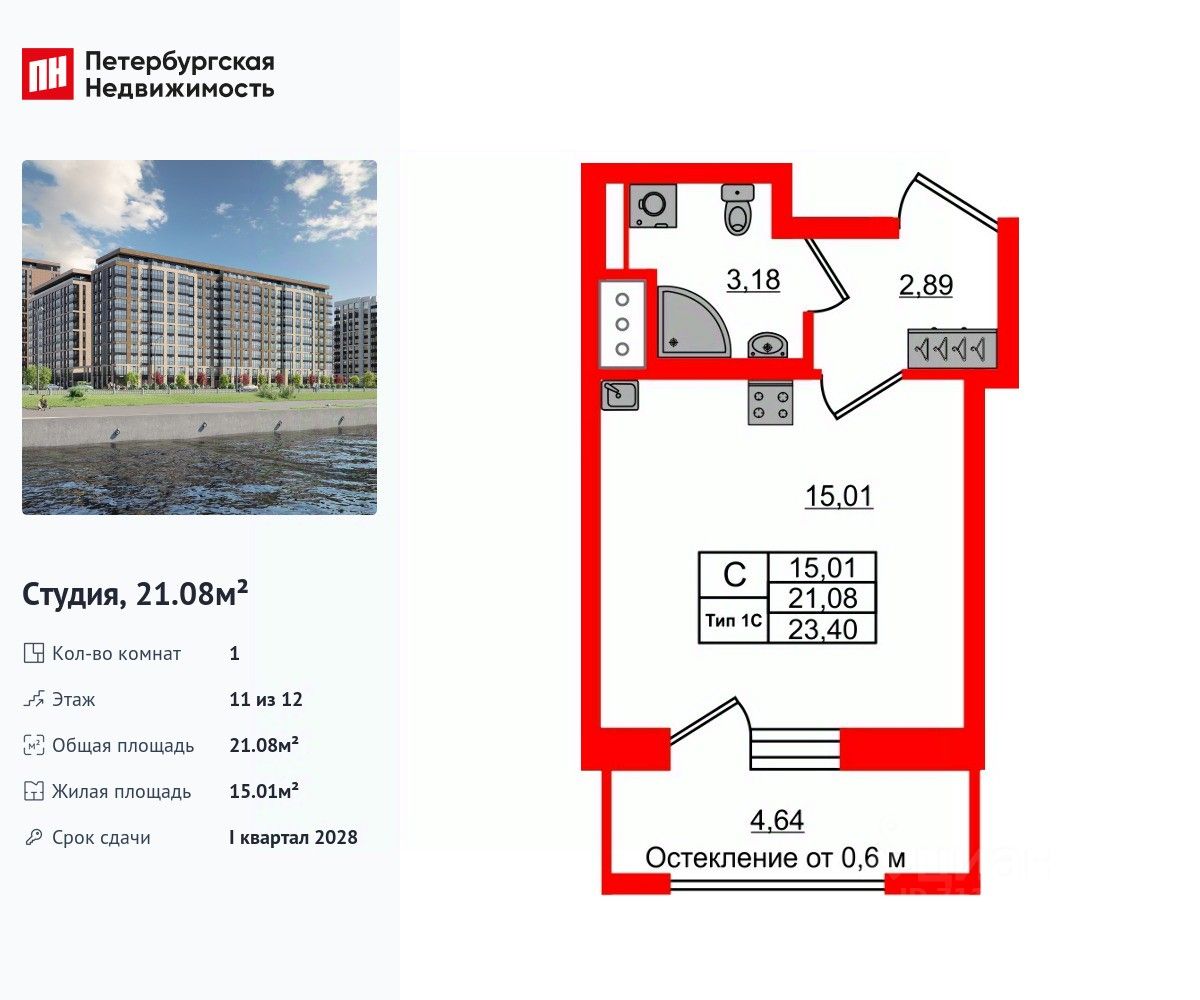 Удобная, классическая, функциональная европланировка, вместительная прихожая 2.89 м². Общая площадь студии - 21.08 м², жилая 15.01 м², высота потолка 2.77 м.